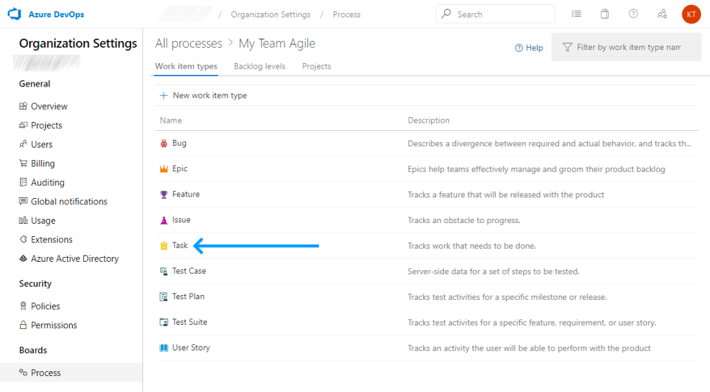 Important: You cannot modify the base process models built into Azure DevOps. If you are using a base process model such as Scrum, Agile, or Basic — you will need to switch to using a custom process that inherits from a base process. This will allow you to modify the process details. See this tutorial if you need to change the project’s process to a new custom process.